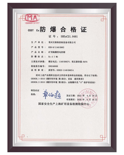 于2000年通過 ISO9001:2000質(zhì)量體系認(rèn)證,建立了完善的產(chǎn)品質(zhì)量控制體系;2006 年6月取得全國工業(yè)產(chǎn)品生產(chǎn)許可證;2008年9月取得礦用產(chǎn)品安全標(biāo)志證書;2012年取得8項礦用產(chǎn)品的專利證書。